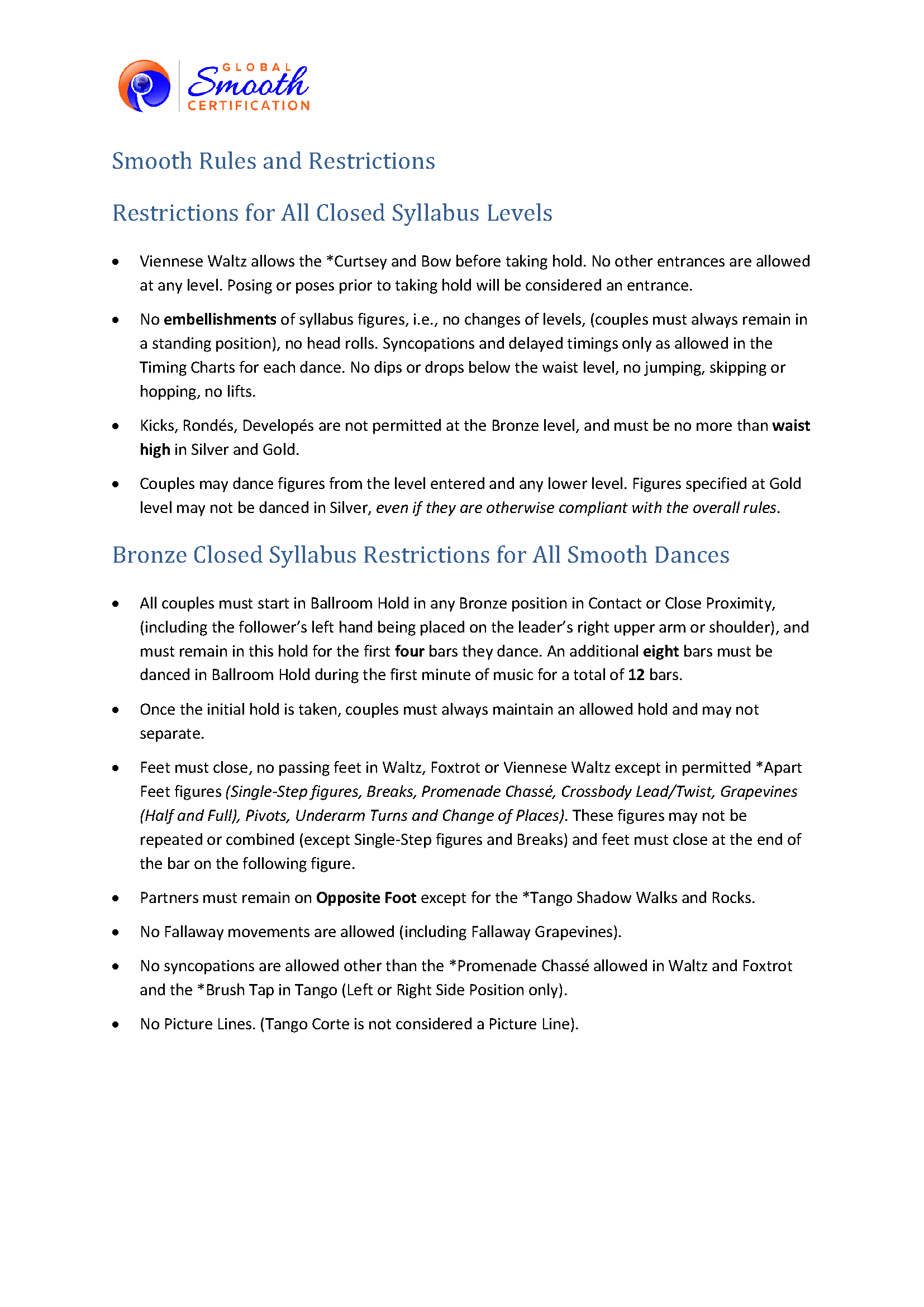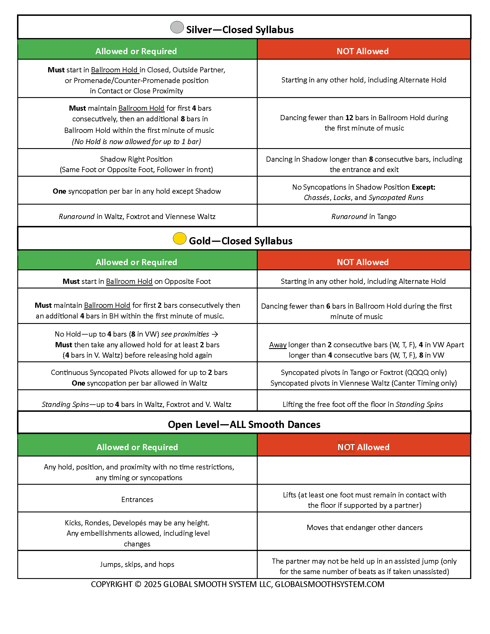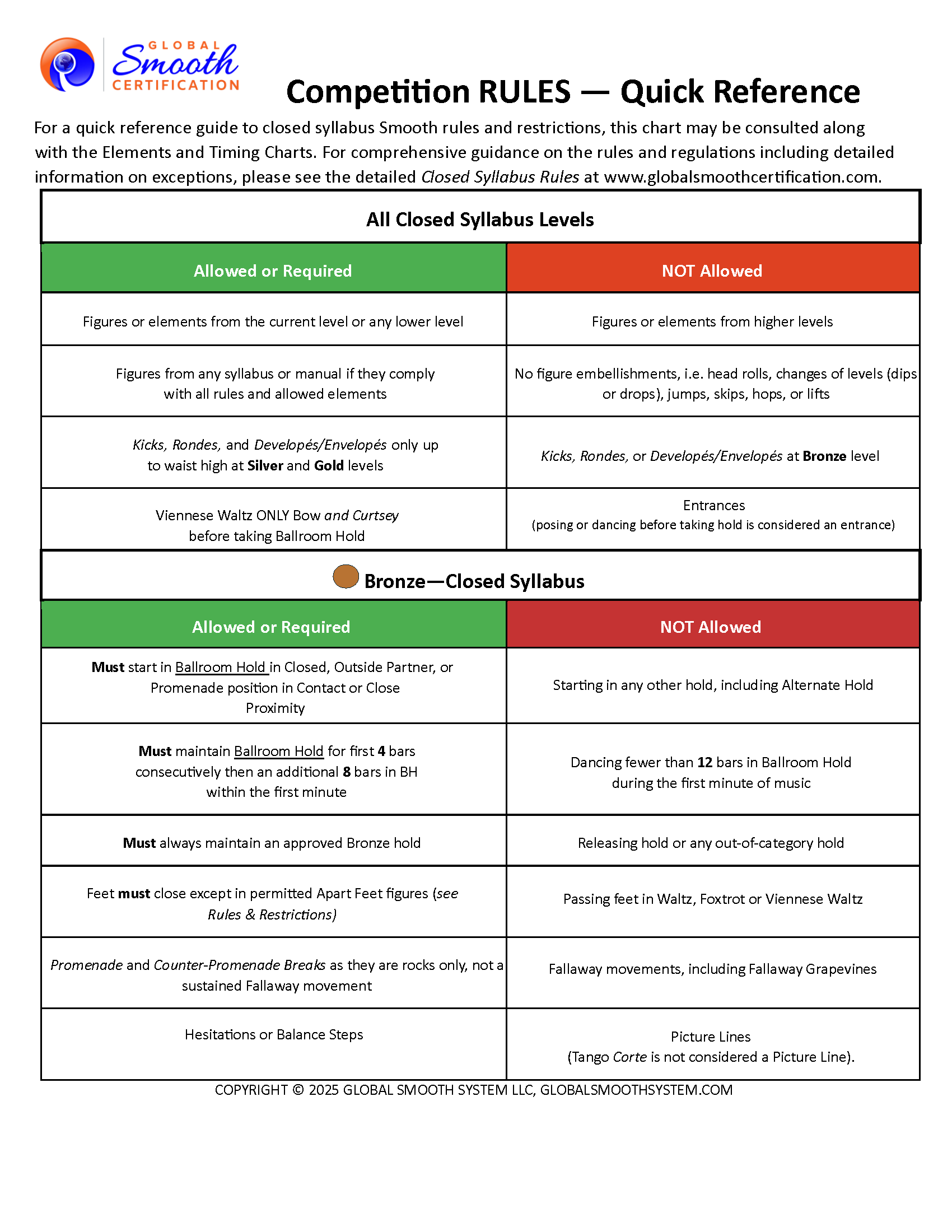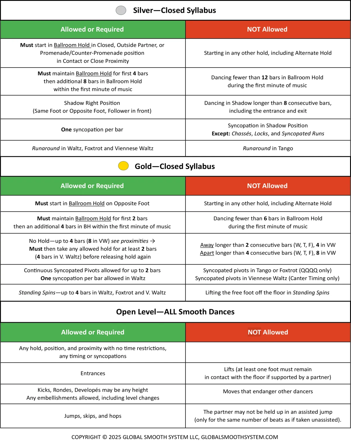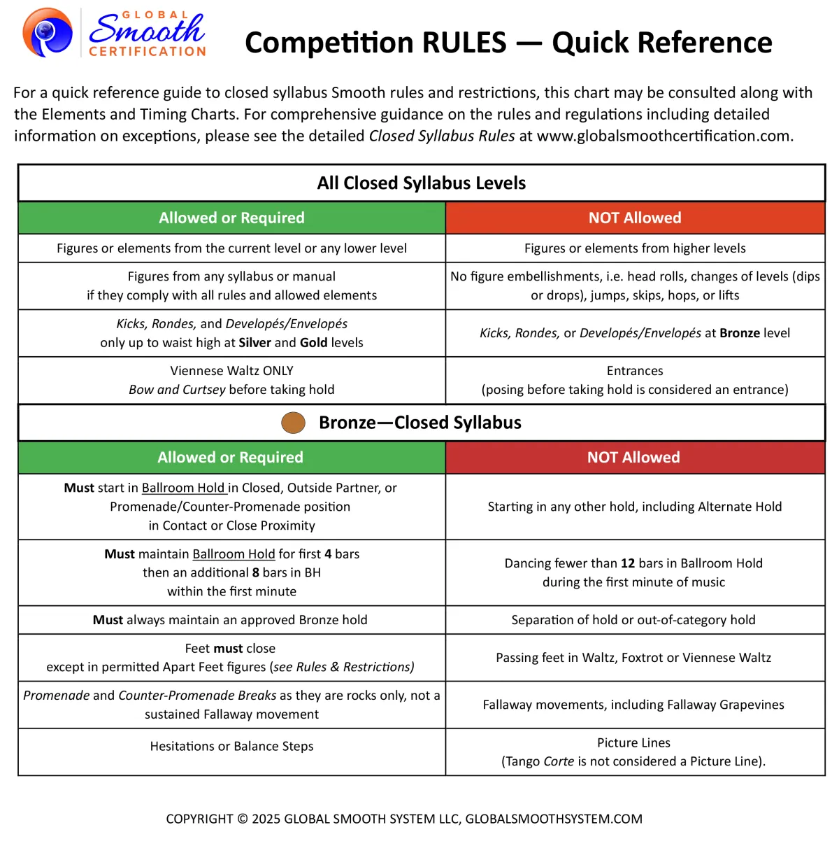Complete the course and earn your GSC Elements Chart certification at Bronze, Silver, and Gold levels applicable to judging or adjudicating both franchise and independent closed Smooth syllabi.